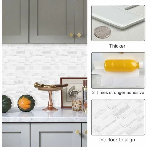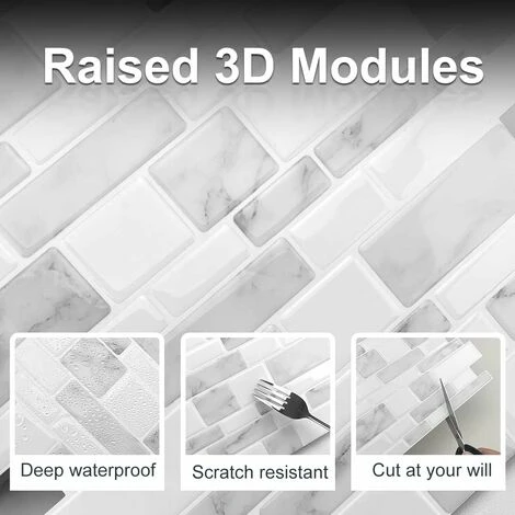 Effet de carreaux 3D – Ce carreau mural de dosseret à peler et coller est gloosy et léger, l’effet de carreaux 3D lui donne l’apparence du vrai carreau.