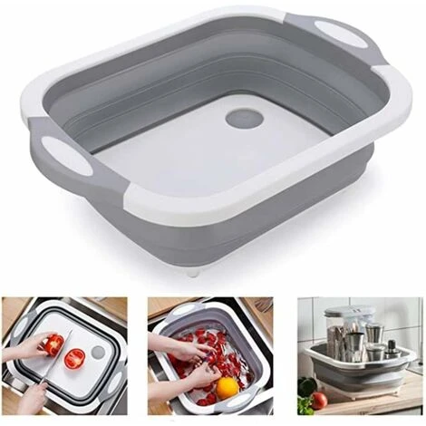 - 【Utilisation 3 en 1】 Cet article est parfait pour couper les légumes, les fruits et la viande, comme évier pliable également pour laver et égoutter la vaisselle ou les aliments. Il peut également être utilisé comme panier de rangement pour le stockage des aliments et des boissons, et la conception pliable le rend facile à stocker et à transporter. Ce produit est un excellent choix pour les pique-niques, les barbecues, le camping, les véhicules récréatifs, etc.