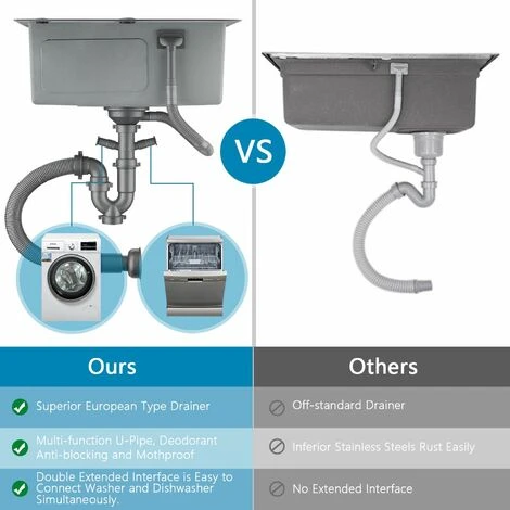 Notre drain a deux ports réservés qui peuvent être connectés à d’autres équipements. Les ports peuvent être connectés à des tuyaux d’un diamètre de 20 et 23. Lorsque vous devez l’utiliser, vous pouvez retirer le bouchon et l’installer. C’est très pratique et rend votre cuisine plus concise.