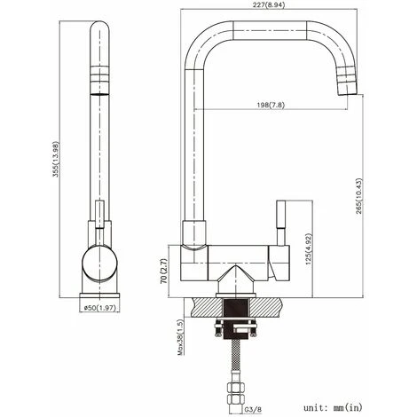 Corps principal du robinet de cuisine est en laiton de haute qualité, résistant à la rouille / à la corrosion et durable,qui peut conserver son brillant même après de nombreuses années d’utilisation.