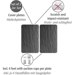 Couvre-plaques De Cuisson 3-en-1, Verre Motifs Ardoise, 52 X 30 Cm, 2 Pièces Wenko