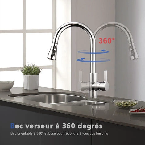 3 modes de pulvérisation (Stream, Spray, Pause) et la douchette extractible de notre mitigeur cuisine peuvent répondre à vos différents besoins de nettoyage ; La douchette rétractable avec un tuyau d’environ 50 cm en combinaison avec un bec rotatif 360° vous permet de couvrir tous les angles de votre évier de cuisine ou double éviers et offre une excellente qualité de lavage