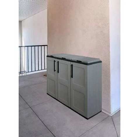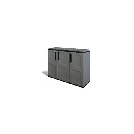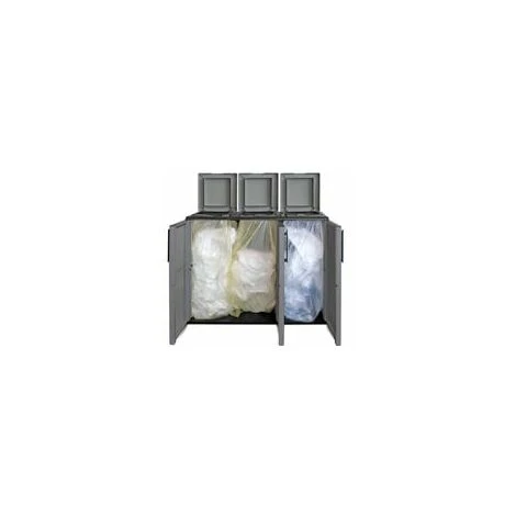 WASTE CABINET – Armoire à déchets à trois portes pour la collecte différenciée de trois types, entièrement grise. STRUCTURE ET UTILISATION – Structure peu encombrante parfaite pour contenir les sacs et séparer les déchets de manière ordonnée, solution pratique et durable pour la collecte séparée des déchets – Couvercles équipés de verrous de sécurité qui garantissent la protection contre le vent et l’ouverture accidentelle – L’anneau porte-sac est particulièrement robuste afin d’éviter la casse – Equipé d’une étagère réglable sur le socle – Pratique pour optimiser l’espace, il peut également être placé à l’extérieur dans le jardin, balcon, terrasse, cave et garage. CARACTÉRISTIQUES TECHNIQUES – Produit entièrement fabriqué avec du plastique recyclé, italien, 100% recyclable – Produit éco-durable entièrement construit en polypropylène, matériau antichoc, résistant au froid et aux rayons UV, aux intempéries, aux huiles et aux solvants, n’absorbe pas les odeurs et ne retient pas humidité – L’assemblage est rapide et facile – Entièrement lavable. 100% MADE IN ITALY – La production durable 100% italienne garantit fiabilité, résistance et durabilité dans le temps l’attention portée aux processus de production: le choix de matières premières de qualité, le souci du détail et l’attention à l’environnement et à la nature font de ce produit un travail noble. CERTIFICATIONS ET DIMENSIONS DU PRODUIT – Ce produit est certifié CE, IPRT – PSV mixeco, TÜV, PEFC et MOCA – Mesures du produit en cm: 102,5x14h80
