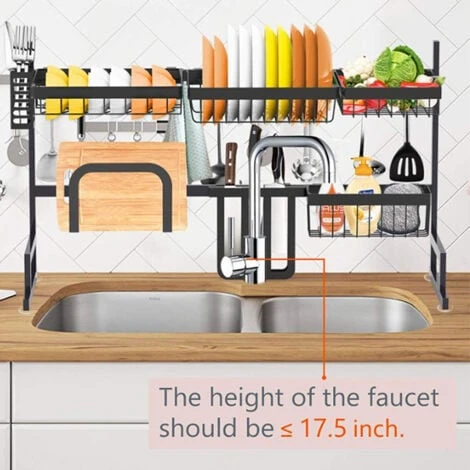 Présentation du produit: Si vous recherchez un égouttoir d’évier durable, il vous convient, il est en acier inoxydable, a un effet de peinture anti-corrosion, est plus durable, facile à nettoyer et antirouille; la surface de cuisson est résistant Résistance aux rayures et longue durée de vie. Économisez beaucoup d’espace et de temps en utilisant la vaisselle et les fournitures plus commodément et rendez la cuisine propre et bien rangée. L’eau coulera directement de l’évier, rendant la cuisine plus propre et plus belle.