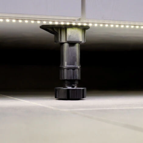 Ils sont réglables en hauteur de -5 mm à +20 mm afin de corriger une éventuelle dénivellation du sol. Les pieds réglables Bone offrent une grande capacité de charge, jusqu’à 40 kg sous pression.