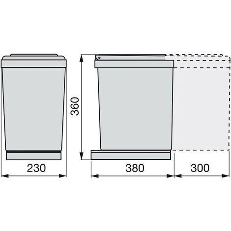Poubelles pour recycler et classer les déchets domestiques spécialement conçues pour être installées dans des meubles de cuisine. Ces conteneurs à ordures s’intègrent dans les tiroirs. Le mécanisme d’ouverture automatique du couvercle, fixé au latéral du meuble, facilite l’accès.