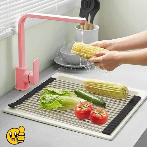 Un excellent ajout aux accessoires de cuisine et aux nécessités de l’appartement. Veuillez mesurer la taille de votre évier avant d’acheter ce séchoir à vaisselle enroulable au-dessus de l’évier. [ Gain de place ] – Le séchoir de cuisine enroulable est facile à utiliser, à plat, à nettoyer ou à ranger pour être rangé dans une armoire lorsqu’il n’est pas utilisé, économisant ainsi de l’espace sur votre comptoir. Ce séchoir à vaisselle au-dessus