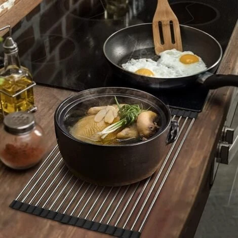 à la rouille, antidérapant et imperméable; supporte jusqu’à 70 lb, pas facile à plier ou à tordre par des ustensiles de cuisine lourds. Grands essentiels d’appartement et accessoires pour la maison. [Taille extra large] – 2 tailles sont disponibles au choix, 43cmx30cm/17″ »x12″ », 43cmx35cm/17″ »x14″ », Convient à la plupart des éviers et comptoirs de cuisine. L’un des grands gadgets de cuisine pour une cuisine bien rangée et une maison confortable.