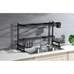 Égouttoir à Vaisselle En Acier Inoxydable Avec Crochets Pour Cuisine Evier Étagère Rangement , Noir