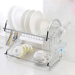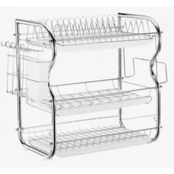Égouttoir A Vaisselle Avec Plateau Inox Save Space Porte-Tasse Blanc 3 Étages