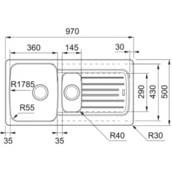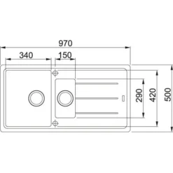 Franke Basis BFG 611-97 Evier 97x50cm Avec égouttoir Réversible, Fragranit +, Onyx (BFG611-97ON)