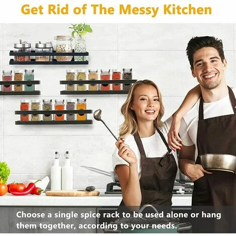 【Durable et facile à nettoyer】 Le porte-épices a une taille de 50 x 12 x 5,5 cm, il est fabriqué en acier inoxydable et peint en noir, il peut résister aux rayures quotidiennes, à la corrosion et à la décoloration, et convient aux environnements humides, ce qui les rend plus durables que les étagères en plastique ou en bois. La partie soudée du support à épices est polie et lisse et n’a pas de pointes pointues, de sorte que vous ne blessez pas vos mains lors du nettoyage.