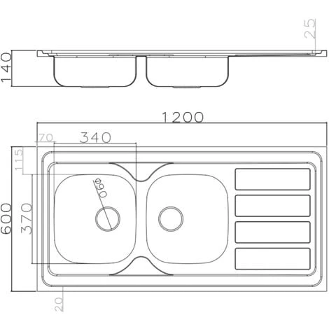 > Profondeur cuve 2 (mm) : 140
