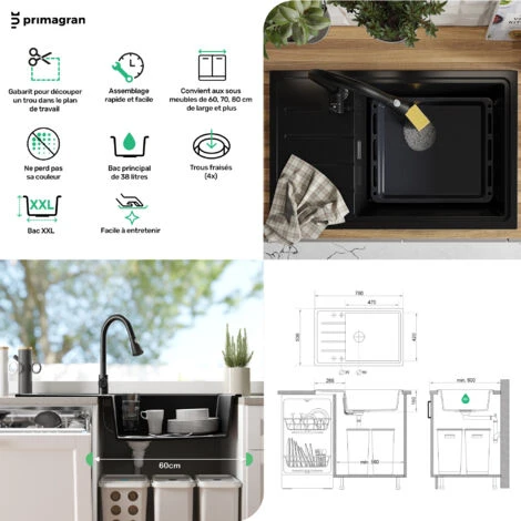 ![]() | L’évier en granit Copenhague 900 Suprême est un modèle élégant à un bac avec une grande cuve et un égouttoir. Le design minimaliste rend l’ensemble très moderne. L’évier peut être installé dans des meubles à partir de 60 cm. |