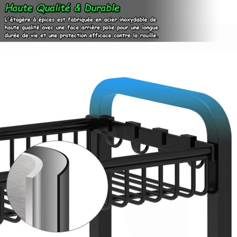 【Facile à utiliser et à nettoyer】Elle est très facile à utiliser grâce à sa conception simple. S’il y a de la poussière ou des taches sur la surface de l’étagère à épices, il suffit de les essuyer avec un chiffon.