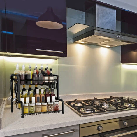 【2 niveaux Étagère de cuisine】Le design étagé offre beaucoup d’espace pour le rangement des ustensiles de cuisine. Il dispose de 8 crochets amovibles pour suspendre des chiffons, des gants, des spatules, etc. Cette étagère vous permet d’utiliser facilement toutes sortes d’épices et d’ustensiles de cuisine et sera le partenaire idéal de votre cuisine. De plus, cette étagère de cuisine de Froadp est un cadeau parfait que votre famille et vos amis vont adorer.