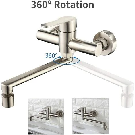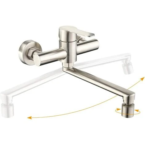 HOMELODY Robinet de cuisine mural rotatif à 360 ° en acier inoxydable Mitigeur mural monocommande – pratique