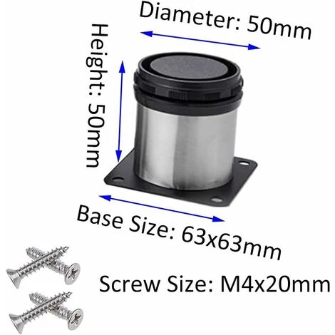 - Taille: 50 x 50 x 50mm (LxLxH); Diamètre des jambes: 50mm; Poids: 100g / unité; Taille de vis: 7x20mm