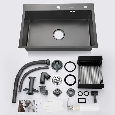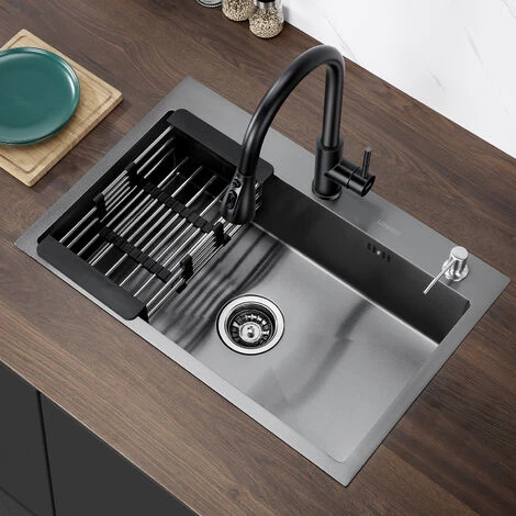 - Évier en acier inox 201, le surface noir, design simple très esthétique. L’effet anti-rouille, sans empreintes digitales, sans huile résiduelle et faciler à nettoyer.
