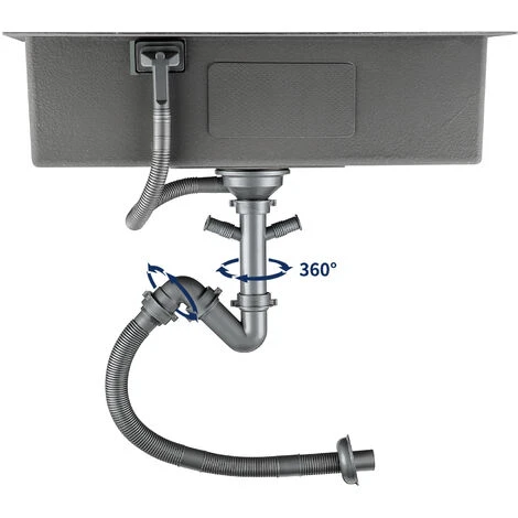 - Et Le tuyau de drainage peut aussi être tourné de 360°, peut être ajustée la position en fonction de l’espace sous l’armoire de cuisine, gagner de la place.
