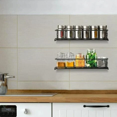 Support à épices polyvalent : vous pouvez accrocher le support à épices au mur, l’accrocher au garde-manger, au placard ou à la porte du placard ; Choisissez en fonction de vos besoins avec ces étagères à épices de cuisine peu encombrantes.