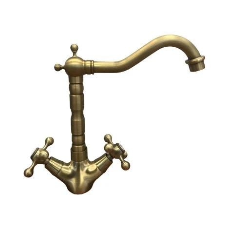 Corps en laiton Têtes à disques traditionnelles (robinet garanti produit durable : grande résistance à l’usure) Croisillons métalliques avec pastilles C/F Bec haut mobile avec aérateur mousseur Design classique et élégant Finition : vieux laiton Robinet garanti 5 ans (les pièces d’usure sont garanties 1 an) Laiton utilisé pour la fabrication conforme à la législation en vigueur sur les matériaux en contact avec l’eau destinée à la consommation humaine (Attestation de conformité sanitaire délivrée par un laboratoire agréé par le ministère de la santé) Deux flexibles d’alimentation inox F.12×17 (G3/8 ») Un jeu complet de fixations Livré avec une notice de montage photos non contractuelles Matériau Laiton Connexion Femelle Filetage 3/8 Caractéristiques Flexibles inclus Garantie 5 ans