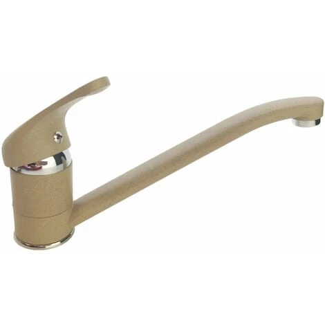 Mélangeur de cuisine classique en couleur granit sable. Simple et fonctionnel ! Mélangeur de cuisine avec bec pivotant bas. Le design est classique, simple et s’adapte à tout type de cuisine. Doté d’une finition de couleur sable, rugueuse au toucher. Le robinet est entièrement fabriqué en laiton chromé et est livré complet avec les tuyaux et les raccords, prêt à être installé. Les connexions sont standard.