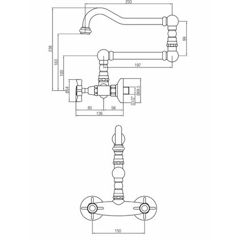 Mélangeur d’évier mural avec bec articulé et orientable |Porta & Bini OLD FASHION 62552BR