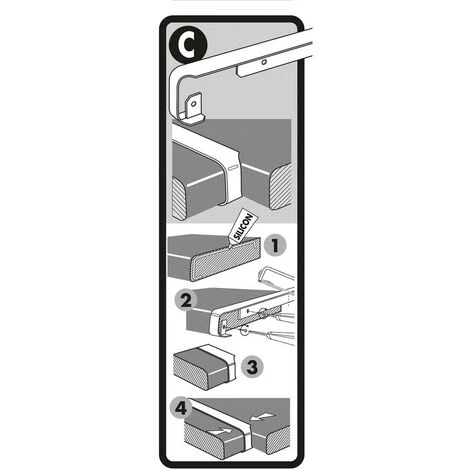 Profil de jonction d’angle, Plan de travail 58mm, Forme 2 quarts de rond, de rayon 0 – 2 mm, Alu