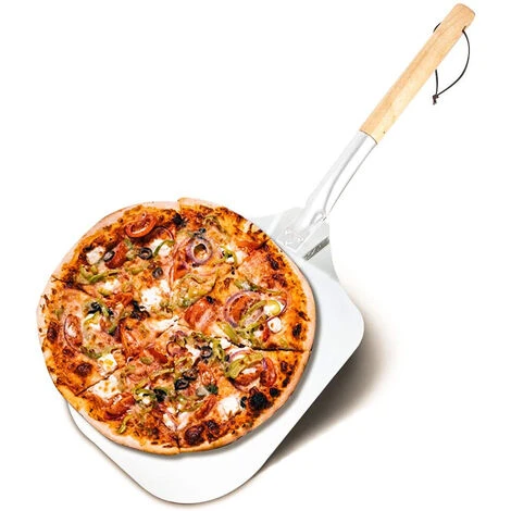4. 【PRATIQUE】: Avec les bords plats du poussoir à pizza en acier inoxydable, vous pouvez facilement passer sous la pâte à pizza et simplement glisser les délicieuses nouilles dans le gril à gaz ou le four et les sortir.