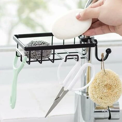 Organisateur d’évier adhésif sur le robinet pour ranger l’éponge Brosse à vaisselle Serviette Gel douche Panier de douche
