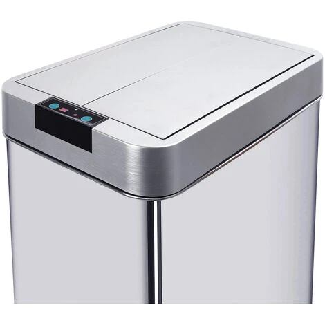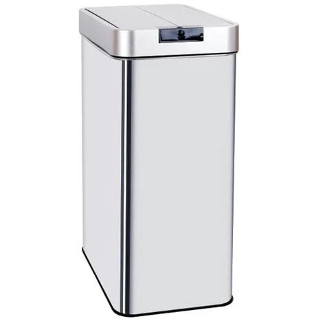 Poubelle avec couvercle à ouverture automatique mains libres et look moderne et élégant.