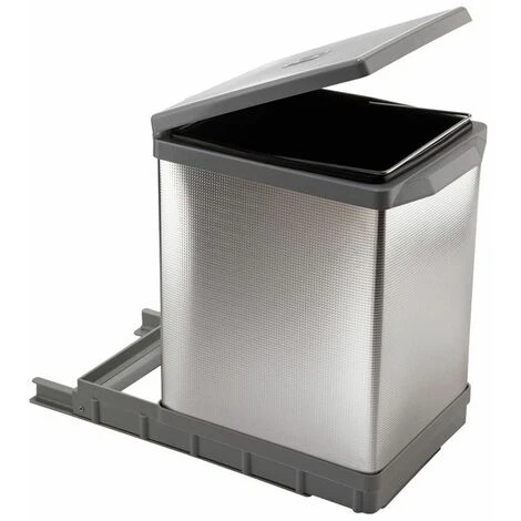 Poubelle coulissante 18L à ouverture et guidage automatiques par simple tirage de la porte du meuble.