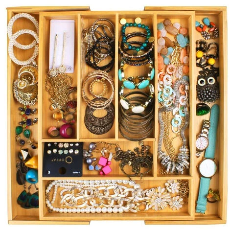 ÉLÉGANT, PRATIQUE ET MULTIFONCTION: notre organisateur de bambou de tiroir extensible optimise l’espace pour exploiter chaque centimètre. Idéal pour ranger des couverts et des ustensiles de cuisine ou tout autres petits gadgets, comme des épices, de la papeterie, des accessoires de salle de bain, du maquillage, des cosmétiques, des bijoux. De plus, son aspect élégant donnera une touche de classe à votre cuisine.