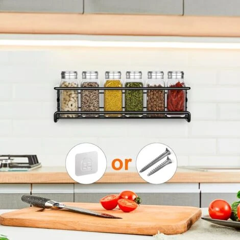 Large Application: Ce support à épices mural peut être utilisé pour placer des épices, des condiments, des petits pots, des sachets de thé, etc. Vous pouvez également l’installer dans la salle de bain et le salon, il peut être utilisé pour placer des