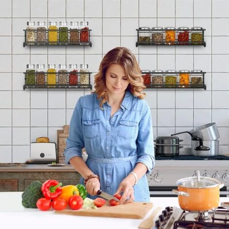 Robuste et Durable: Ces étagères à épices sont fabriquées en acier au carbone de haute qualité et utilisent la technologie anti-oxydation, elles sont antirouille et durables.