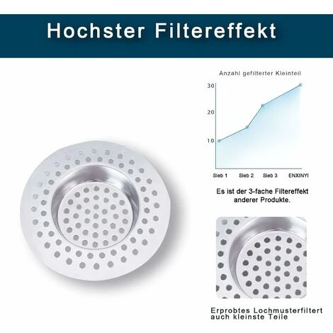- Meilleur effet filtrant: la taille des filtre evier de vidange est plus petite et le nombre est plus grand, ce qui permet non seulement au flux d’eau de mieux passer, mais bloque également les cheveux, l’effet filtrant est 3 fois supérieur à celui du drain conventionnel passoire.