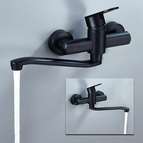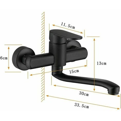 Facile à installer : robinet mural. La distance entre les trous de montage est de 13,5 à 16,5 cm