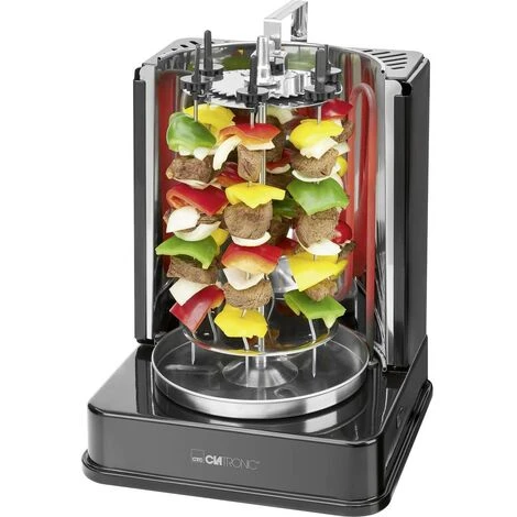 Gril vertical pour kebab et brochettes pour faire griller sans graisse poulets, Kebab/gyros ou brochettes de viande Grâce à la position verticale, le jus de la viande coule directement dans le bac récupérateur de graisse en inox.