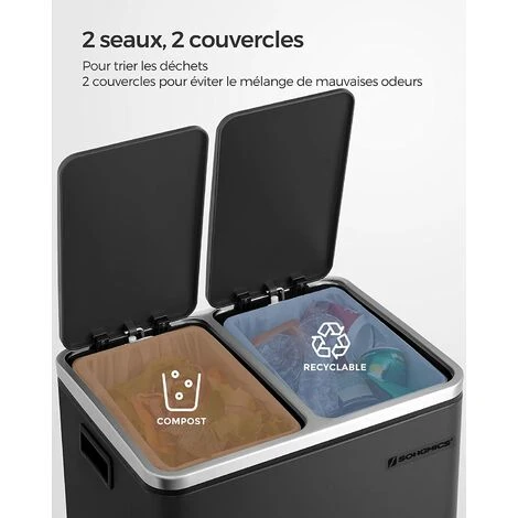 - TRI PLUS FACILE : Cette poubelle à 2 compartiments vous facilite le recyclage. Avec ses pédales, vous n’aurez même pas à la toucher pour trier !