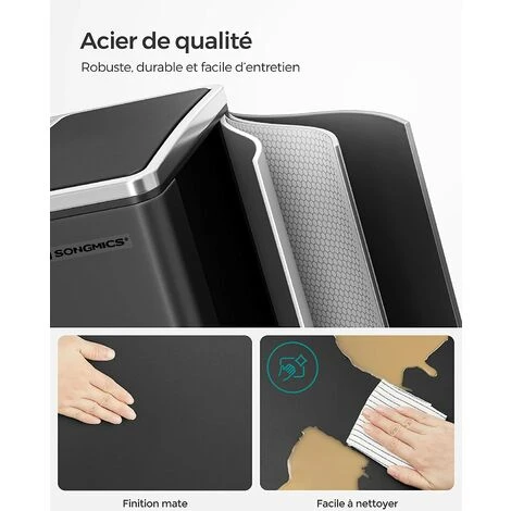 - Matériaux : Poubelle en acier, couvercles en plastique ABS, seau intérieur en plastique