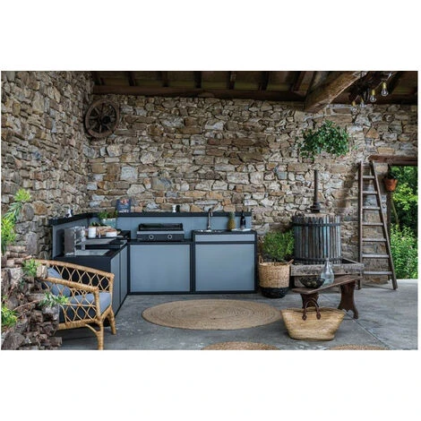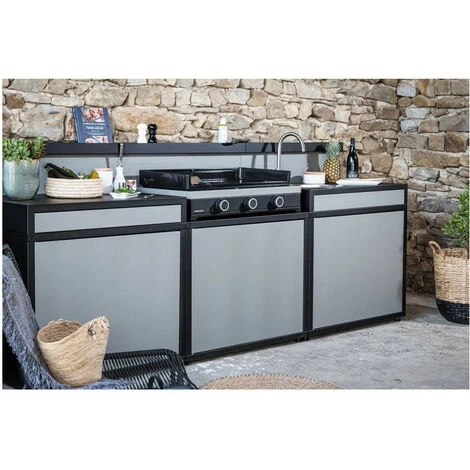 Support évier, acier revêtement 3 couches, 1 porte, 1 Evier inox & Robinetterie,Rangement Haut,Adaptateur tuyau arrosage