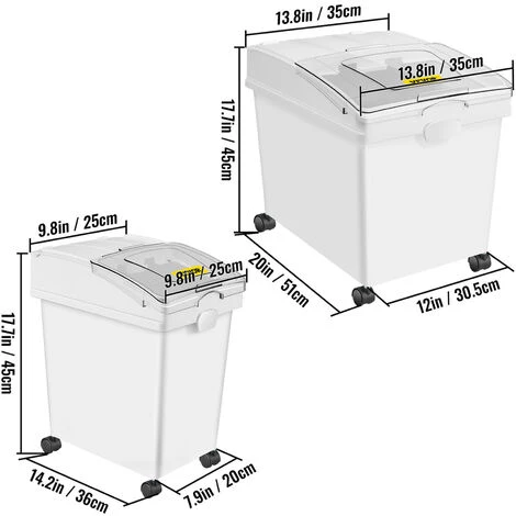 - Facile à Déplacer: Avec quatre roulettes sur le fond, ce conteneur de riz est facilement maniable dans toutes les directions, vous permettant de vous déplacer autour des obstacles et de gagner du temps.