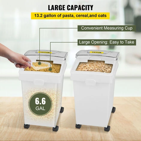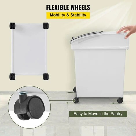 - Facile à Déplacer: Avec quatre roulettes sur le fond, ce conteneur de riz est facilement maniable dans toutes les directions, vous permettant de vous déplacer autour des obstacles et de gagner du temps.