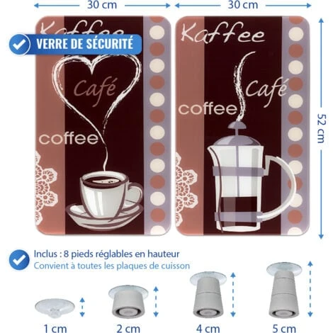 - Etendue de la livraison : lot de 2 protections plaque de cuisson avec 8 pieds antidérapants, verre trempé, 30 cm x L: 52 cm